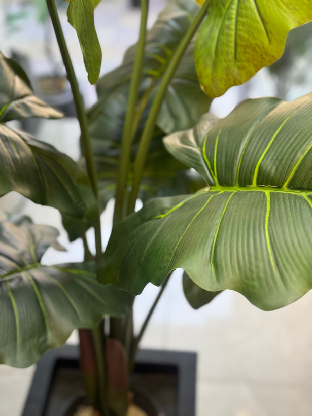 پدرختچه مصنوعی بابا آدم بلک با تنه چرمی روشن رنگ و برگهای لمسی نرم جلوهای خاص و چشمنواز در دکوراسیونهای مدرن ایجاد میکند. این مدل با ارتفاع ۱۴۵ سانتیمتر و تراکم مناسب برگها، نمایی پرجلوه و طبیعی دارد. ترکیب رنگهای روشن بدنه با سبز ملایم برگها، حس عمق و جلوهای لوکس به فضا میبخشد