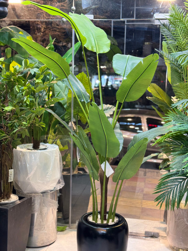 درختچه مصنوعی پرنده بهشتی (استرلیتزیا) 14 برگ، تنه چرمی