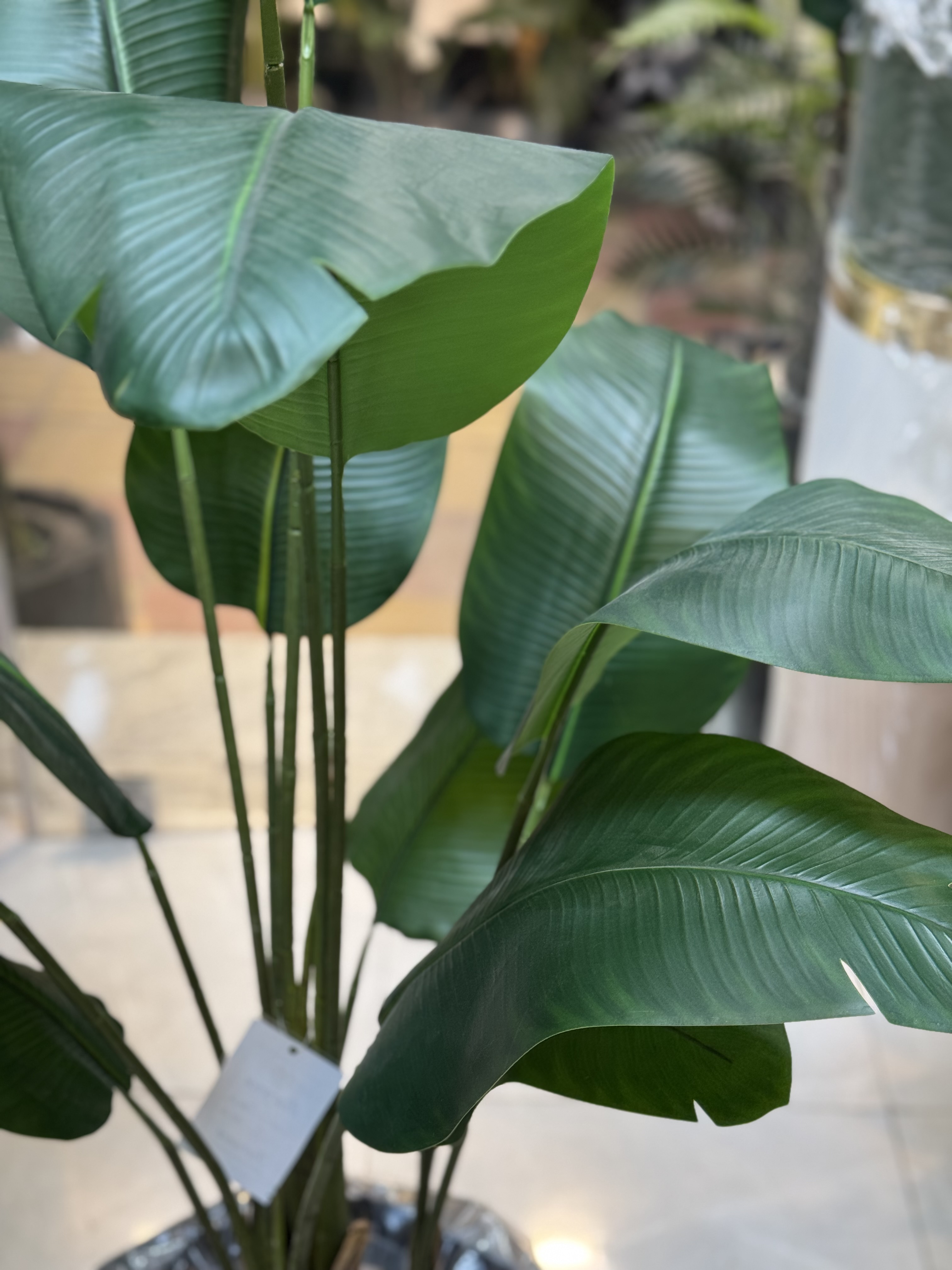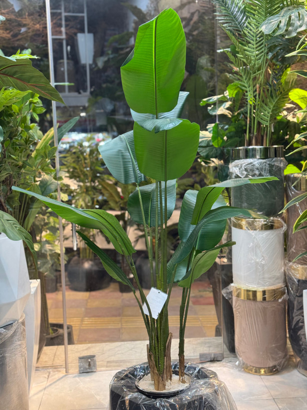 این درختچه پرنده بهشتی گزینهای عالی برای میزها، کانترها یا فضاهایی است که نیاز به یک المان عمودی کوتاهتر دارند (ارتفاع 160 سانتیمتر). این مدل دارای 13 برگ با بافت لمسی است که رنگ سبز کمی تیرهتر نسبت به مدلهای پربرگتر قبلی دارد، که ظاهری بالغتر و عمیقتر ایجاد میکند. تنه از جنس نرمال بوده و برای افزودن جلوه طبیعی، تزئینات پوسته طبیعی به صورت جزئی روی آن کار شده است. این محصول هم قابلیت فرمدهی شاخهها را دارد و نگهداری آن تنها با گردگیری میسر است